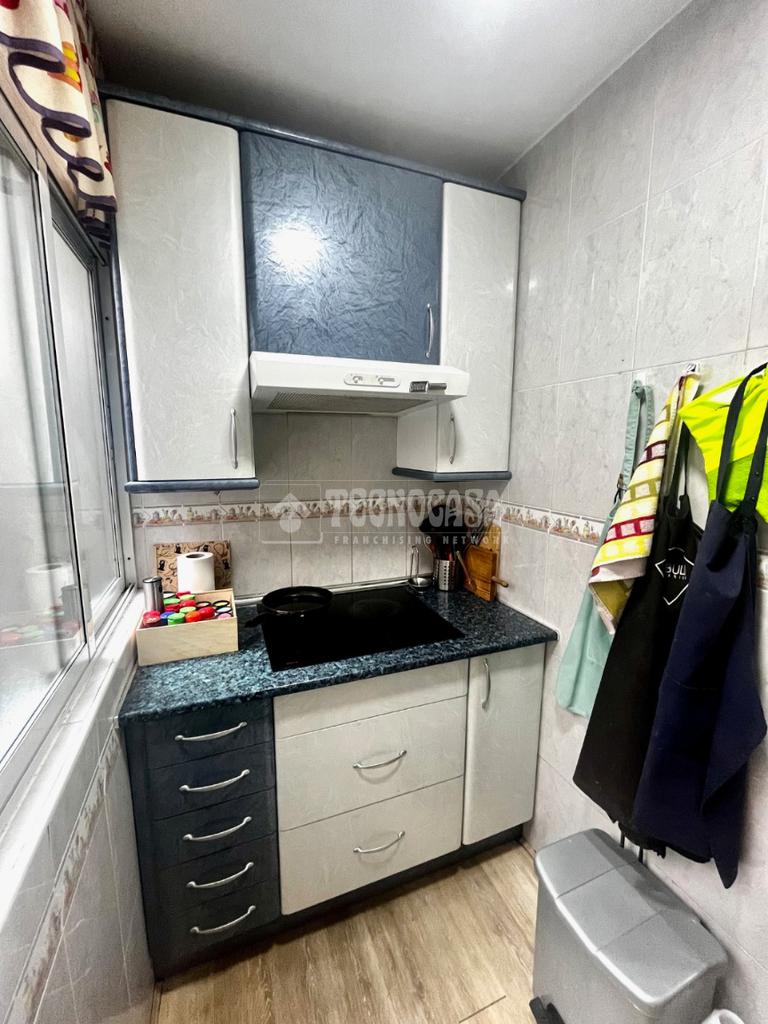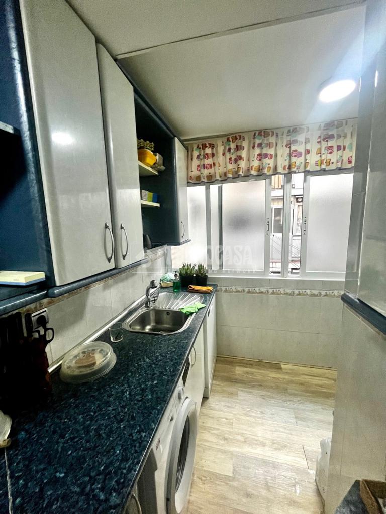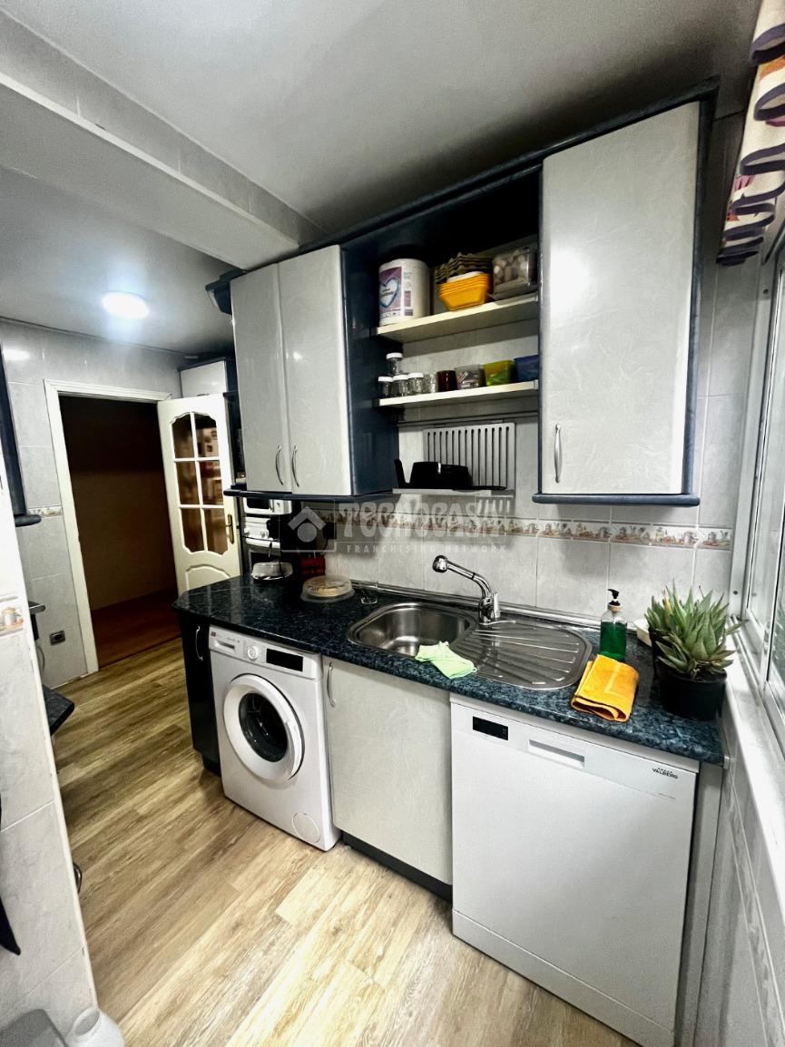 Amplia Cocina reformada equipada con electrodomésticos, muebles altos y bajos, zona de desayuno y ventanas exteriores, Cuarto de baño reformado con plato de ducha.